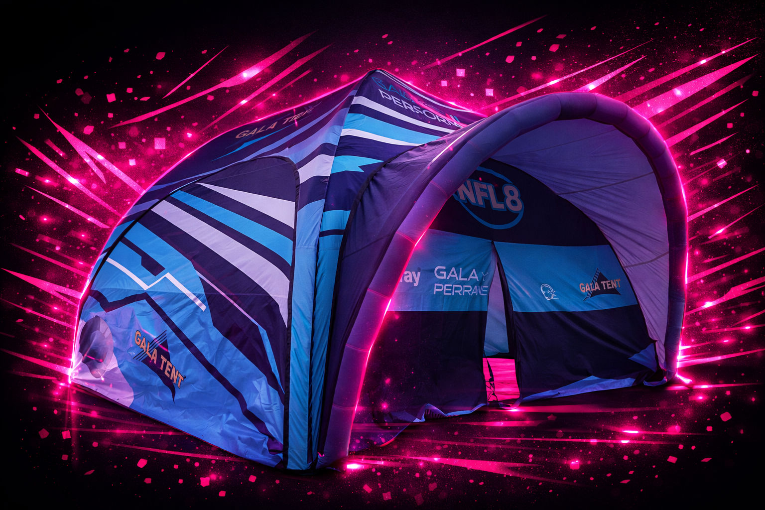 In most cases, this will be a branded shelter — whether that’s a pop-up structure, inflatable shelter, marquee or star shade system. This acts as your operational hub and primary branding surface.